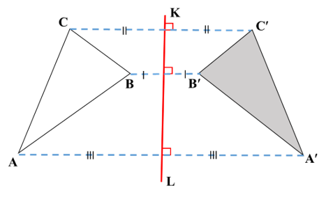 Bayangan bangun ABC oleh refleksi terhadap garis KL adalah A‘B‘C‘