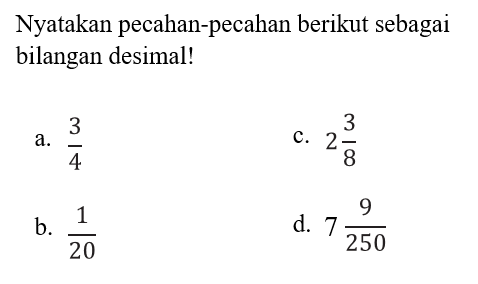 💠 Cara yang pertama kita bisa mengubah penyebutnya menjadi bilangan 10, 100, 1.000, dan seterusnya.