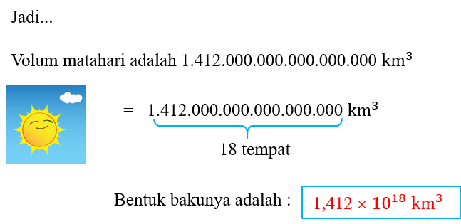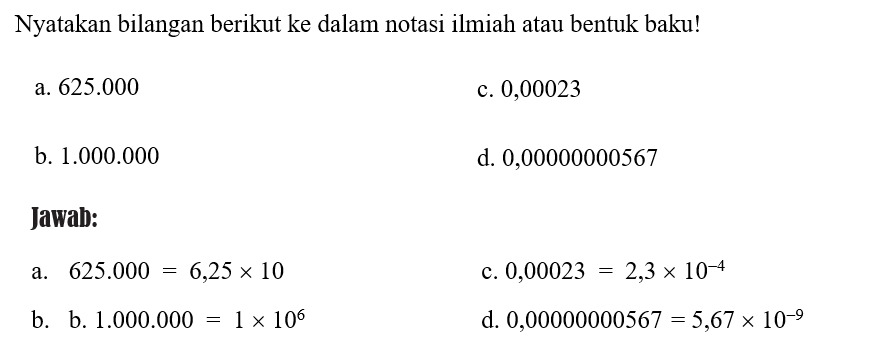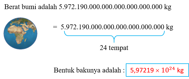 Untuk mempermudah dalam membaca dan menuliskannya, bilangan-bilangan tersebut dapat diubah ke dalam bentuk baku dengan bilangan pokoknya 10.
