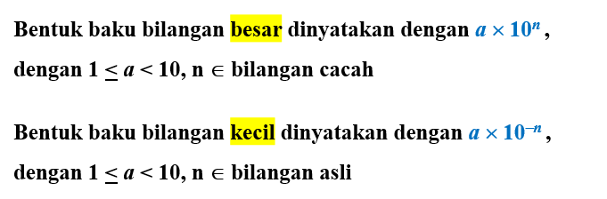 Bentuk baku digunakan untuk menyatakan bilangan yang sangat besar atau sangat kecil.