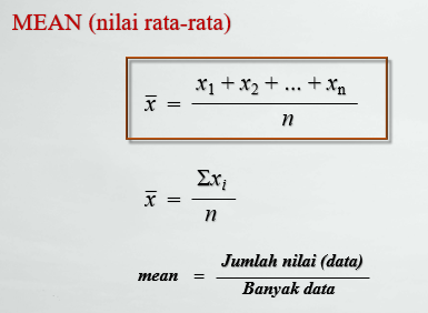 Pada uraian kegiatan di atas, data tinggi wisatawan dan berat badan siswa masing-masing dapat dinyatakan dengan x1, x2, x3, …, dan xn, sehinggga nilai rata-rata hitung (mean) dapat ditentukan dengan cara berikut.