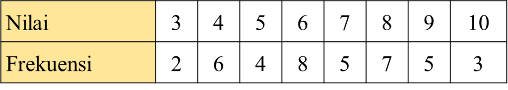 Selanjutnya, perhatikan data yang disajikan dalam bentuk tabel frekuensi berikut!