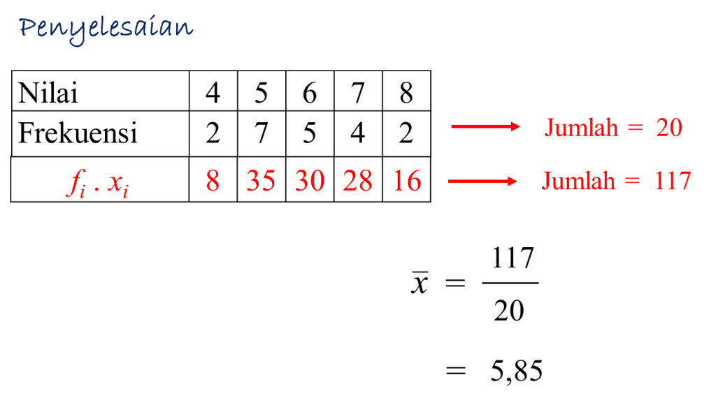 Perhatikan tabel berikut kemudian tentukan nilai rata-ratanya!