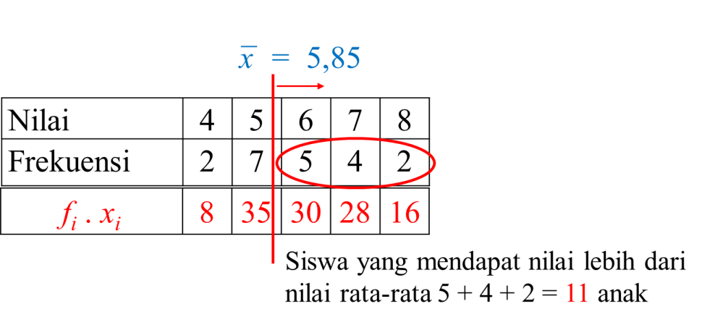 Berapa banyak siswa yang mendapat nilai lebih dari nilai rata-rata?