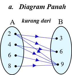 a.diagram panah untuk relasi ‘lebih dari” dari himpunan A ke himpunan B