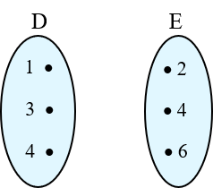 Pada diagram Cartesius, relasi antara anggota dua himpunan D dan E dapat dinyatakan dengan cara berikut: