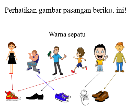 Enam orang di sebuah kantor, yaitu Abigail, Ben, Christian, Devan, Edo, dan Fandi memilih warna sepatu yang mereka pakai. Data yang didapat sebagai berikut: