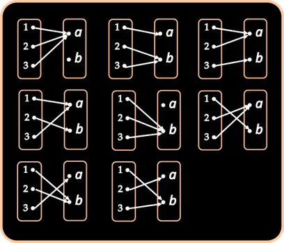 Diketahui himpunan P = {1, 2, 3} ke Q = {a, b}