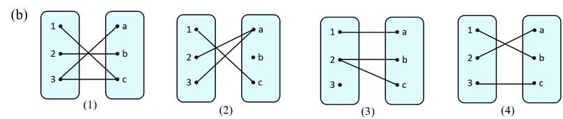 b. Dari himpunan D = {1, 2, 3} ke himpunan E = {a, b, c, d}