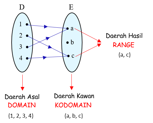 {a, c} disebut range atau daerah hasil (yang ditunjuk anak panah)