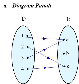 Diketahui himpunan D = {1, 2, 3 , 4} dan E = {a, b, c}
