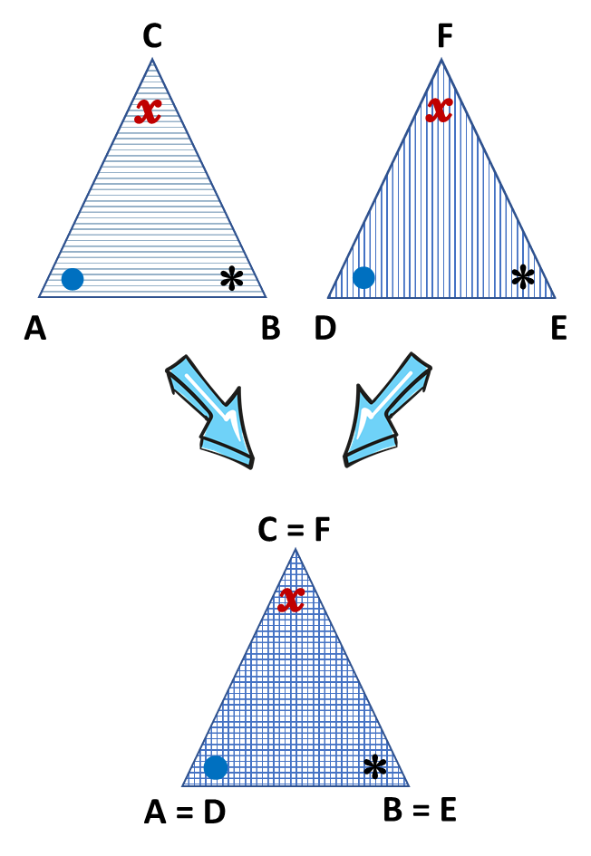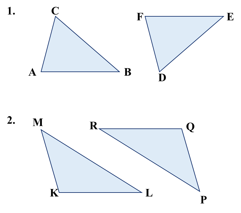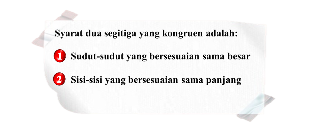 Tulislah sudut-sudut dan sisi-sisi yang seletak pada bangun dua segitiga berikut ini. Kemudian apa kesimpulanmu?