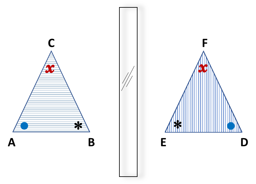 Gambar berikut ini adalah segitiga yang diletakkan di depan cermin sehingga didapatkan bayangan dari segitiga tersebut.