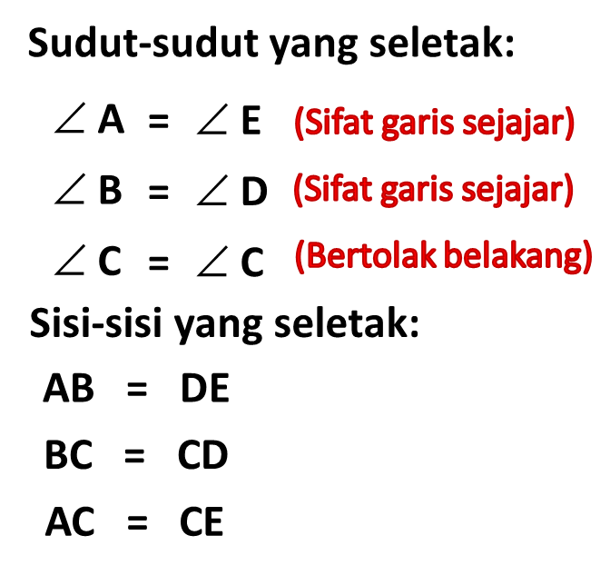 > Perhatikan sisi-sisi yang bersesuaian pada gambar!