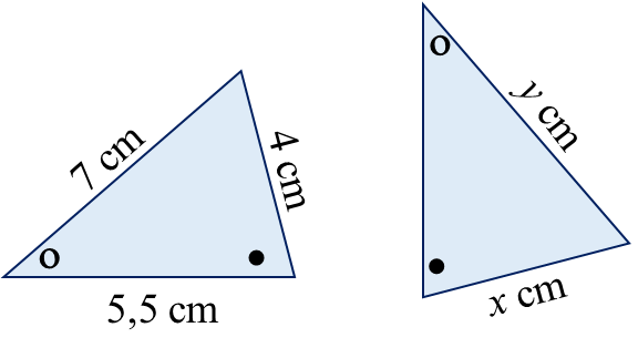 Dua segitiga berikut ini kongruen. Tentukan nilai x dan y!