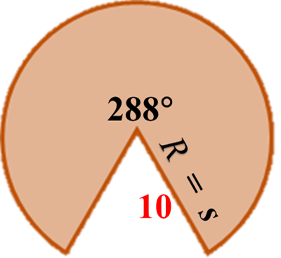 Selembar seng berbentuk juring lingkaran dengan sudut 288° dan panjang jari-jari 10 cm (lihat gambar) akan dibuat menjadi sebuah kerucut.
