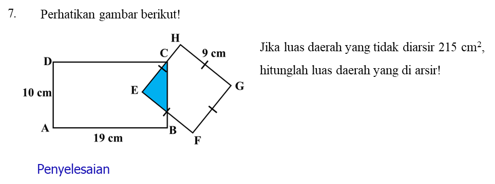 5.Perhatikan gambar! Jika luas wilayah yang diarsir 68cm 2 , tentukan luas wilayah yang tidak diarsir jika ABCD adalah persegi!
