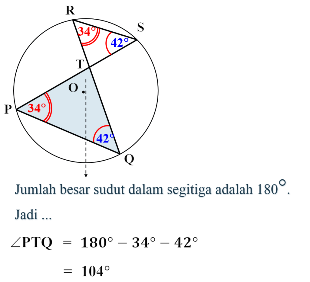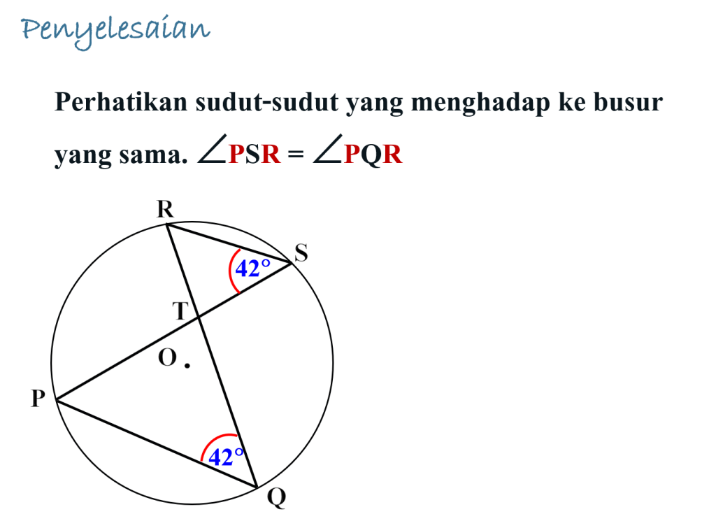 Besar ∠QPS = 34° dan besar ∠PSR = 42°. Tentukan ∠PTQ!