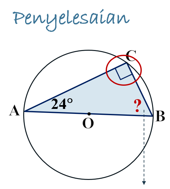 Pada gambar di atas, AB adalah diameter. Besar ∠BAC = 24°.