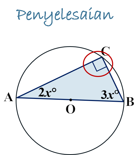 Perhatikan sudut C, karena menghadap ke diameter lingkaran maka besar ∠ACB = 90°