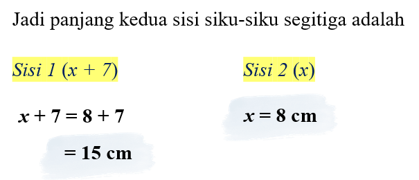 Panjang sisi siku-sikunya berbeda 7 cm.