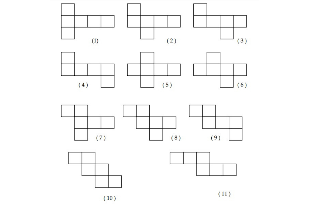 Dari rangkaian persegi di atas mana yang bukan merupakan jaring-jaring kubus?
