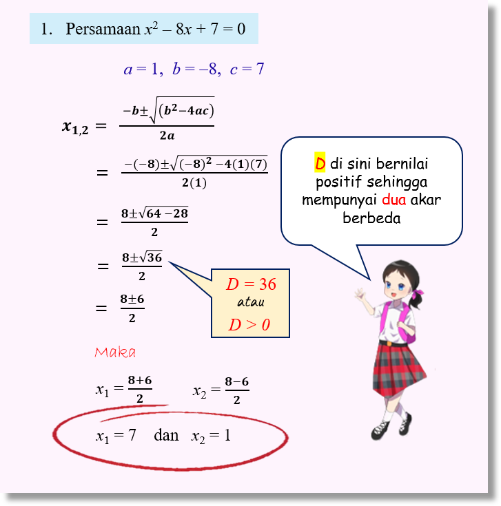 Diskriminan adalah suatu nilai yang dapat membantu kita menentukan sifat-sifat dari akar-akar atau penyelesaian dari suatu persamaan kuadrat.