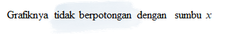 Tidak mempunyai akar (penyelesaian) real.Berikut adalah grafik persamaan kuadrat dengan D < 0