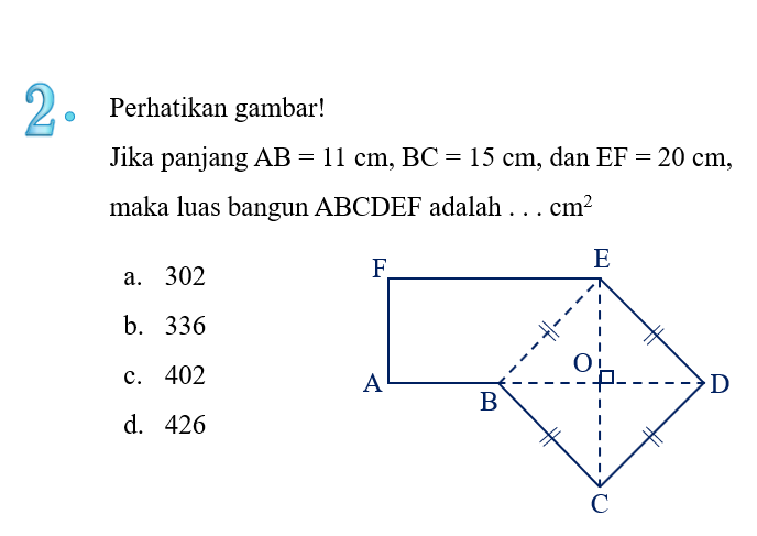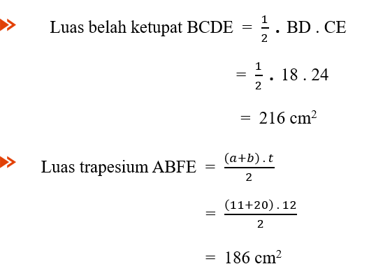Jadi luas ABCDEF = 186 + 216 = 402 cm2