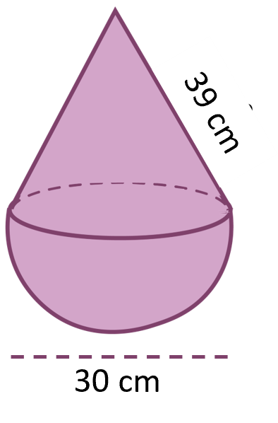 Hitunglah luas permukaan bandul yang dibentuk oleh kerucut dan belahan bola berikut