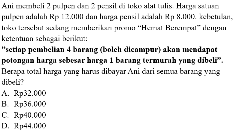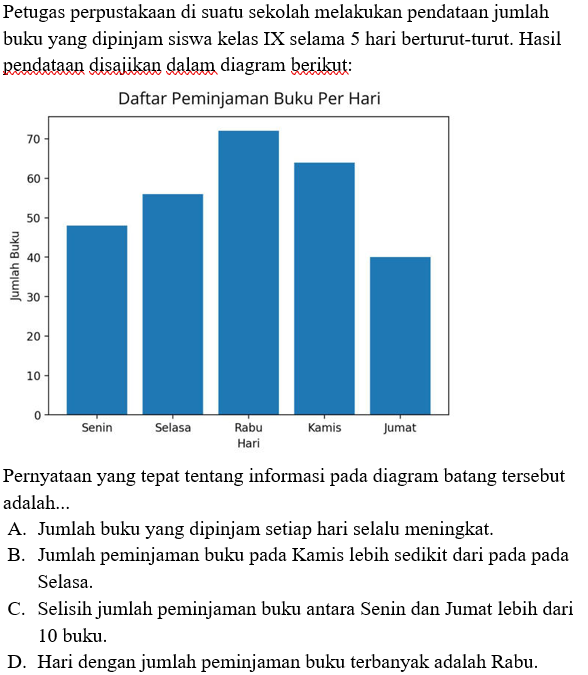- Jika setiap pengunjung di bulan Mei membeli satu alat tulis, maka jumlah pulpen yang terjual adalah 64 buah.
