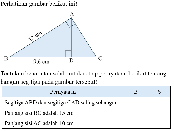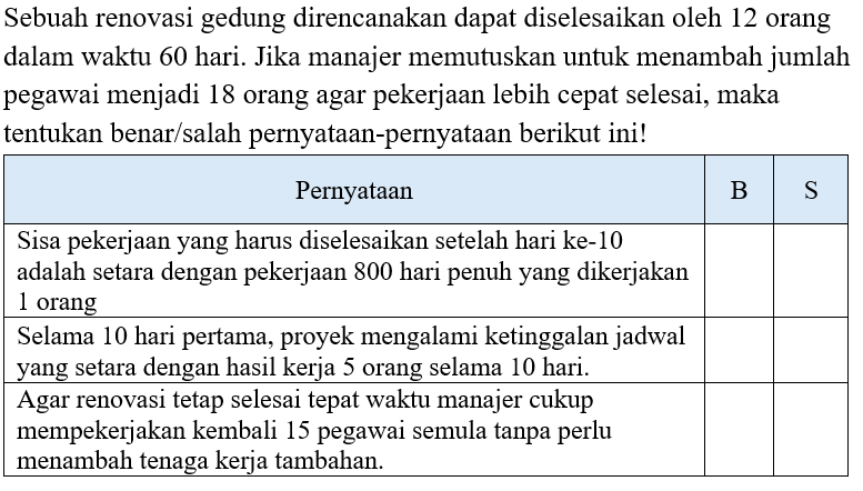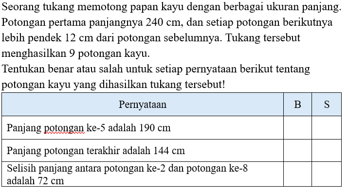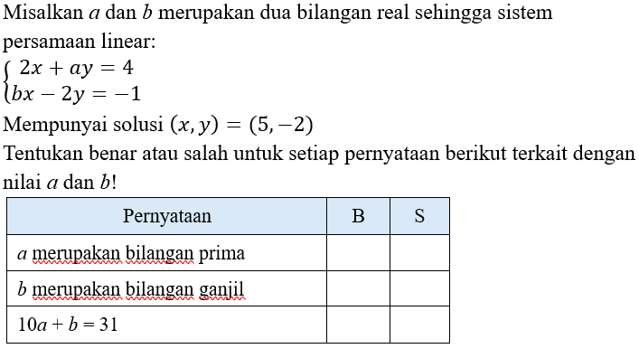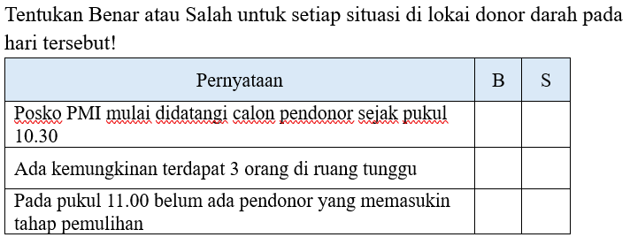 Berdasarkan kedua data tersebut, tentukan manakah pernyataan yang benar untuk setiap pernyataan berikut?
