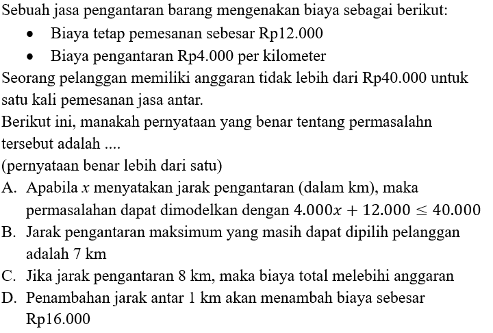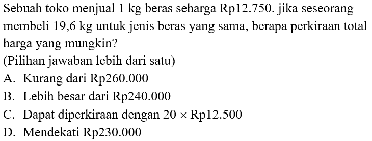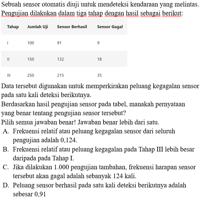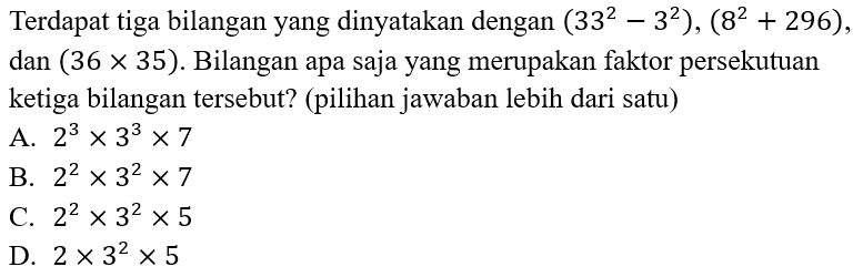 Pilih semua jawaban benar! Jawaban benar lebih dari satu.
